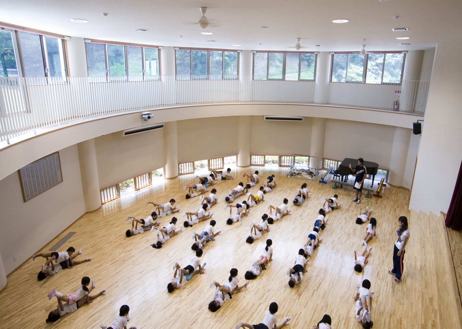 - 2Fまで吹き抜けの開放的なホール。 体育あそびを行なったり、誕生日会や季節のイベントなど楽しいことをいっぱい行ないます。